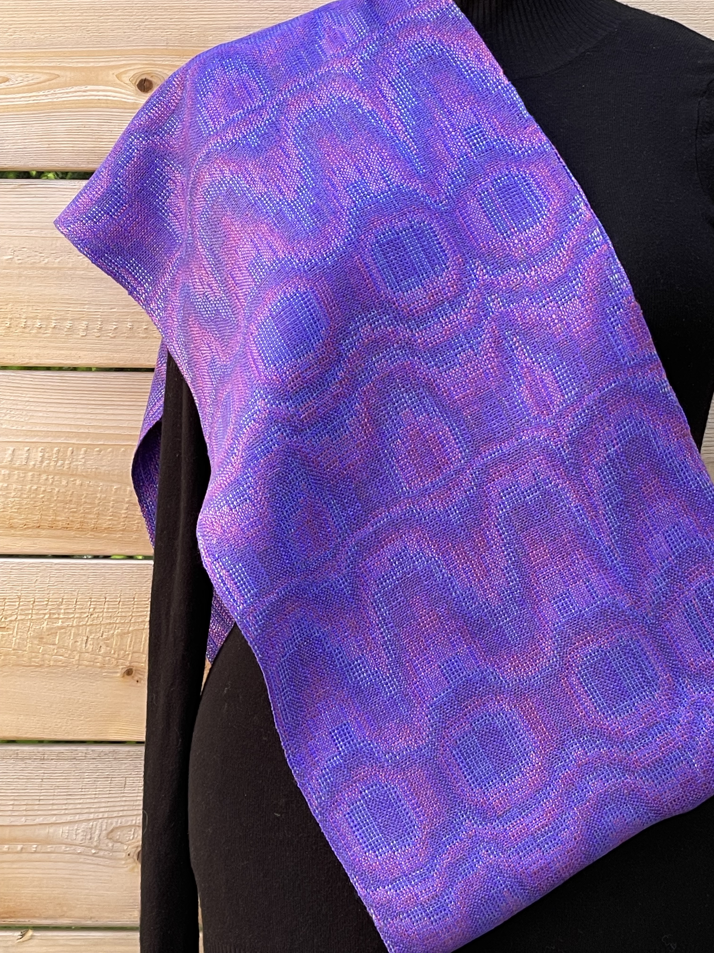 Roberta’s projects include hand-woven and hand-dyed silky scarves and lacey silk shawls. She is particularly interested in using computer software to build on traditional weaving techniques.