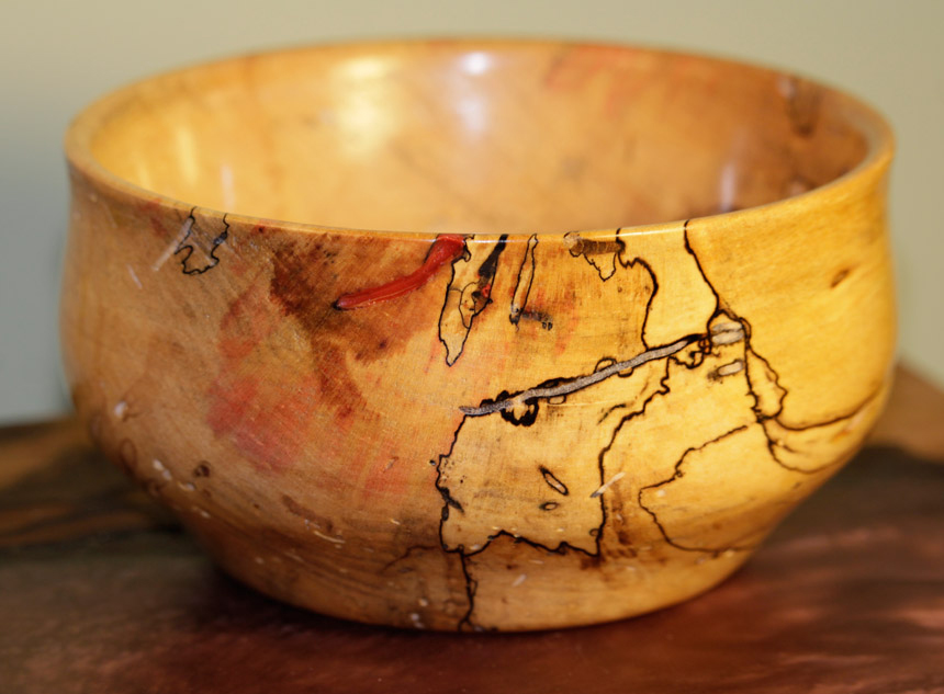 “The media that I prefer to work with is wood. The transformation of a ‘boring’ stick’ to something where the grain is highlighted, and the natural beauty shines is the reason that I turn wood. I don’t make the beauty, it’s in the wood, I just try to show it.”